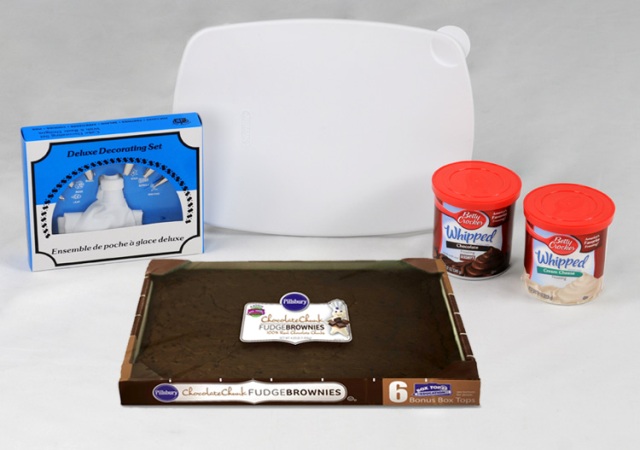 Our friends at MyBlogSpark sent me a Pillsbury Chocolate Chunk Fudge Brownies gift pack that included a $25 Sam's Club gift card to use to purchase the brownies, Betty Crocker frosting, a decorating kit, and a large container for transporting the brownies.
